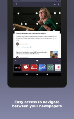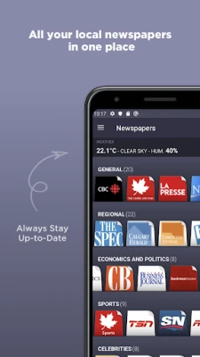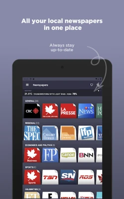 Entdecken Sie mit Canadian Newspapers eine Welt der kanadischen Berichterstattung, neu definiert für den modernen Leser. Diese intuitive Anwendung gruppiert Zeitungen intelligent, sodass Sie mühelos durch die Medienlandschaft navigieren können. Beginnen Sie beispielsweise mit den umfassenden Artikeln von cbc und wechseln Sie dann nahtlos über das untere Menü zu ähnlichen Publikationen wie the globe and mail oder la presse. Erleben Sie den einzigartigen Vorteil, verschiedene Perspektiven auf dasselbe Ereignis zu vergleichen und so ein tieferes Verständnis der Nachrichten zu gewinnen.