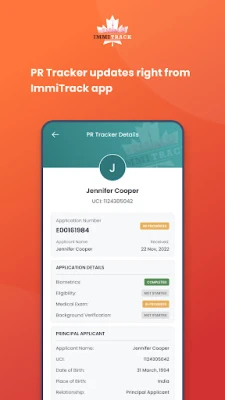 ImmiTrack unterstützt Personen bei der Auswanderung nach Kanada (Studenten, Familienangehörige, Investoren, Fachkräfte). Verfolgen Sie den Fortschritt Ihrer Bewerbungen unabhängig von der Quelle an einem zentralen Ort. Überwachen und filtern Sie alle Ihre Anträge effizient für eine klare Übersicht über den Bearbeitungsstatus.