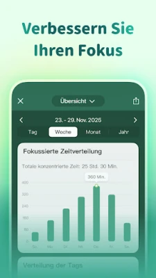 Dieses Gefühl von Fortschritt und Verantwortung ist der Kern von Forest. Es ist eine sanfte, aber effektive Motivation, die Bildschirmzeit zu reduzieren und stattdessen das Hier und Jetzt zu erleben. Bekämpfen Sie Prokrastination und steigern Sie Ihre Produktivität, indem Sie Ihre Aufmerksamkeit auf das Wesentliche lenken. Mit jeder erfolgreichen Konzentrationsphase wächst Ihr Baum, und Sie sammeln Belohnungen, die Sie nutzen können, um über 30 verschiedene Baumarten und beruhigende Hintergrundgeräusche freizuschalten. So verwandeln sich Ihre disziplinierten Momente in einen blühenden, persönlichen Wald, der Ihre Erfolge visualisiert und Sie stets motiviert, Ihre täglichen Ziele zu erreichen.