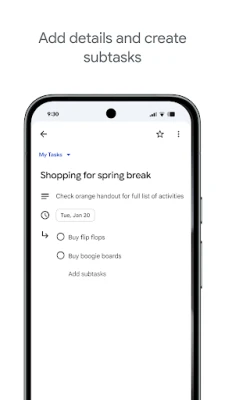 Verpassen Sie nie wieder eine Frist: Mit Google Tasks können Sie präzise Termine für jede Aufgabe festlegen und sich rechtzeitig benachrichtigen lassen, um Deadlines konsequent einzuhalten. Ein weiteres Highlight ist die nahtlose Integration in Ihre Google Workspace-Umgebung. Erfassen Sie Aufgaben direkt aus E-Mails in Gmail, und Google Tasks stellt automatisch einen praktischen Link zur ursprünglichen Nachricht bereit. Diese intelligente Verknüpfung spart wertvolle Zeit und sorgt dafür, dass alle relevanten Informationen an einem Ort gebündelt sind. Erleben Sie, wie einfach es ist, produktiv zu bleiben und Ihre Ziele mit der Unterstützung von Google Tasks zu erreichen.