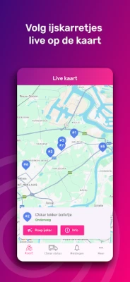 Verpassen Sie nie wieder den Eiswagen! Diese Anwendung hilft Ihnen zu sehen, wann der Eiswagen in Ihrer Straße ist oder in Ihrer Nähe vorbeikommt. Wissen Sie immer genau, wo sich der Eiswagen befindet und wann Sie Ihr leckeres Eis bekommen können. Nie mehr zu spät für Ihr Lieblingseis!