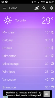 Passen Sie Météo Canada ganz an Ihre Bedürfnisse an, indem Sie eine personalisierte Liste Ihrer bevorzugten Städte auf der Startseite einrichten. Ob zu Hause, im Büro oder auf Reisen – eine völlig neue Schnittstelle für Ihre aktuelle Position liefert Ihnen die maßgeschneiderten Wetterbedingungen genau dort, wo Sie sie am meisten benötigen. Météo Canada ist mehr als nur eine Wetter-App; es ist Ihr intelligenter Begleiter, der Ihnen hilft, den Tag mit Vertrauen zu gestalten, basierend auf den aktuellsten und genauesten meteorologischen Daten.