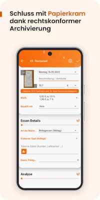 Das Herzstück von N2F ist die intelligente Automatisierung, die manuellen Aufwand auf ein Minimum reduziert. Fotografieren Sie einfach einen Beleg, und unsere fortschrittliche Technologie erkennt blitzschnell alle relevanten Informationen wie Datum, Betrag, Währung und Mehrwertsteuer, um einen vollständigen Speseneintrag ohne manuelle Eingabe zu erstellen. Die Berechnung von Verpflegungspauschalen und Kilometergeldern erfolgt automatisch nach den aktuellen gesetzlichen Vorgaben des deutschen Bundesfinanzministeriums oder Ihren individuellen Richtlinien. Dabei sorgt ein K.I.-gestütztes Warnsystem für höchste Präzision und hilft, Anomalien oder Fehler frühzeitig zu erkennen. N2F garantiert zudem eine 100% digitale, revisionssichere und GoBD-konforme Langzeitarchivierung, sodass physische Belege nach dem Scan entsorgt werden können.