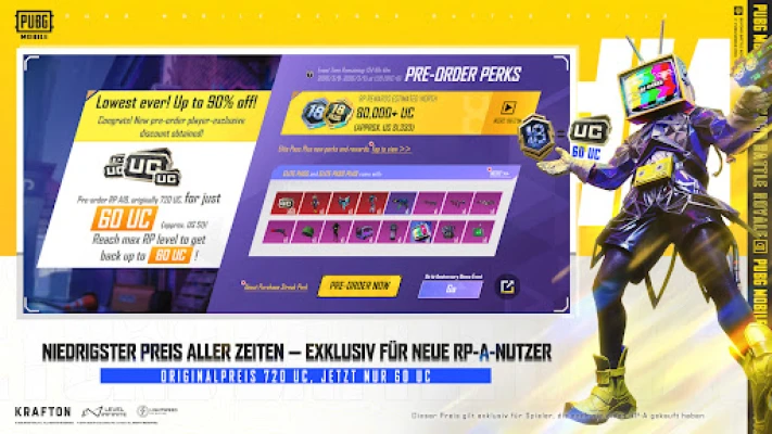 PUBG MOBILE setzt Maßstäbe in puncto Realismus und dynamischem Gameplay. Mit einer riesigen Auswahl an authentischen Waffen und Ausrüstungsgegenständen können Sie Ihre Präzision in jeder Situation unter Beweis stellen. Regelmäßige Aktualisierungen bereichern das Spielerlebnis kontinuierlich mit frischen Inhalten, neuen Karten und aufregenden Modi, sodass keine Partie der anderen gleicht. Tauchen Sie ein in die spannenden, kostenlosen Multiplayer-Schlachten und erleben Sie packende Momente gemeinsam mit Freunden, während Sie sich in epische Überlebenskämpfe stürzen. Bei PUBG MOBILE zählt allein Ihr Überlebenswille und Ihr taktisches Geschick, um die Schlachtfelder zu dominieren.
