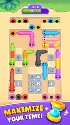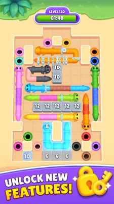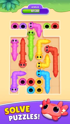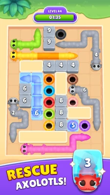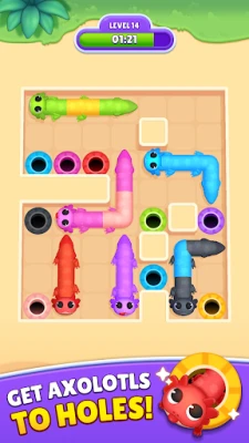 Tauchen Sie ein in Hunderte von farbenfrohen Levels, die mit jedem Fortschritt an Komplexität gewinnen. Ziehen und strecken Sie Ihre entzückenden Axolotl-Freunde über das Spielfeld und planen Sie jeden Schritt sorgfältig, um die vorgegebenen Pfade vollständig auszufüllen. Die Kombination aus intuitiver Steuerung und cleveren Farb-Matching-Herausforderungen sorgt für ein durchweg befriedigendes Spielerlebnis. Begleitet von flüssigen Animationen und beruhigenden Klängen, ist jede Rätselsitzung in Slither In eine Wohltat für die Sinne und ein Fest für die Augen.