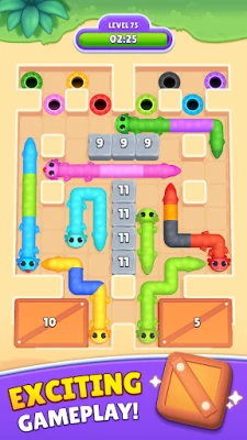 Entdecken Sie eine Welt voller kniffliger Pfade und liebenswerter Kreaturen mit Slither In. Ihre Mission ist so charmant wie herausfordernd: Führen Sie Ihre dehnbaren, glitschigen Gefährten durch ein Labyrinth aus Gängen, um sie sicher zu ihren farblich passenden Zielen zu bringen. Was auf den ersten Blick einfach erscheint, entpuppt sich schnell als faszinierendes Logikrätsel, das Ihre Kombinationsgabe auf die Probe stellt und gleichzeitig pure Entspannung bietet. Jede Bewegung zählt, während Sie die einzigartigen Eigenschaften Ihrer Freunde nutzen, um jeden Weg zu füllen und das Puzzle zu lösen.