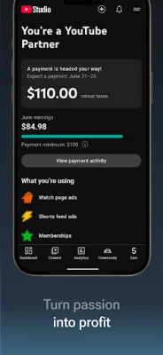 Verleihe deinem Kanal einen unverwechselbaren Charakter und behalte die volle Kontrolle über deine Inhalte. Passe die Gestaltung deines Auftritts an und verwalte mühelos die Details deiner Videos, Shorts und Livestreams, um deine Präsentation stets frisch und fesselnd zu halten. Und wenn der Moment gekommen ist, dein Schaffen zu professionalisieren, unterstützt dich diese App auch auf dem Weg zu einem nachhaltigen Unternehmen auf YouTube: Bewirb dich für das YouTube-Partnerprogramm und erschließe dir den Zugang zu essenziellen Monetarisierungsfunktionen, um deine Leidenschaft in greifbaren Wert zu verwandeln.